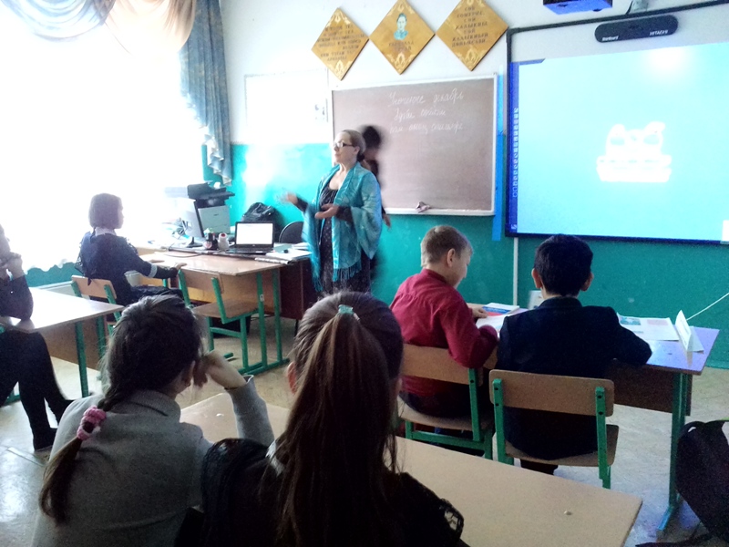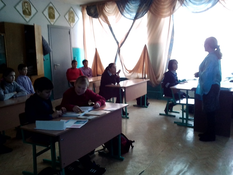 Китапханәче Галимуллина Г.М. бәйрәмнең тарихы һәм дәүләт символлары турында сөйләде. Аннан соң укучылар уенда катнашып, үзләренең белемнәрен күрсәттеләр.