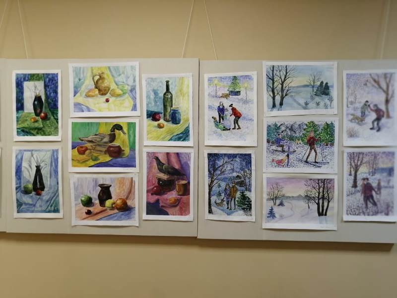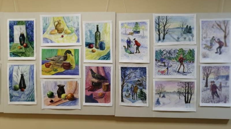 Балалар сәнгать мәктәбенең 2 нче катында рәсем сәнгате бүлегенең 3 нче сыйныф укучыларының эшләре буенча хисап күргәзмәсе уза.