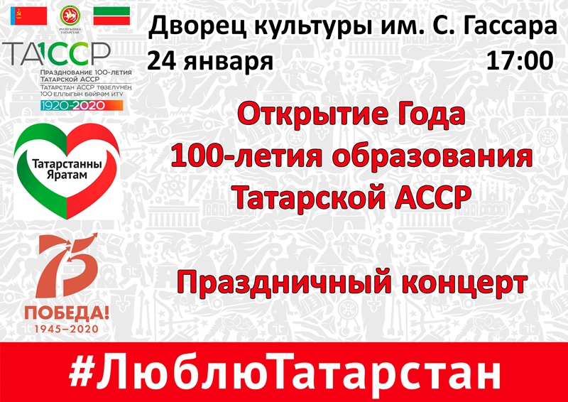 24 гыйнварда 17.00 сәгатьтә С.Гассар ис. мәдәният сараенда Татарстан АССР оешуга 100 ел тулуга багышланган бәйрәм концерты була. Барлык теләүчеләрне көтеп калабыз. Керү ирекле.