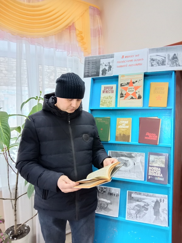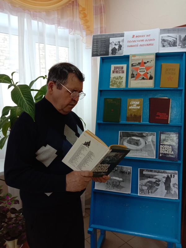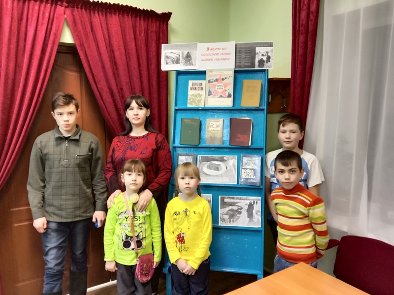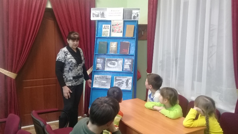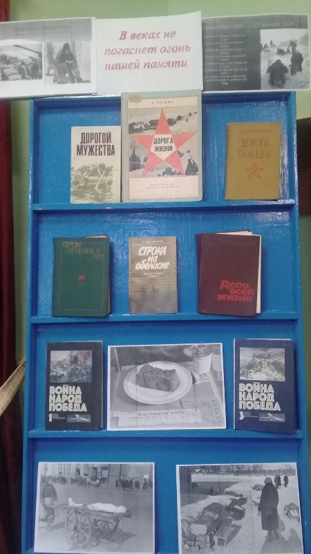 Китапханәче күргәзмәдәге китаплар белән таныштырып, шул тарихи вакыйга турында сөйләде. Китапханәгә килгән балалар белән Н. Ходзаның балалар өчен нәшер ителгән Ленинград камалышы, анда кешеләр кичергән авырлыклар, ленинградлыларның, бөтен совет халкының батырлыгы сурәтләнгән “Тормыш юлы “ дигән китабын укыдылар һәм китапны бер укучы укырга алды.