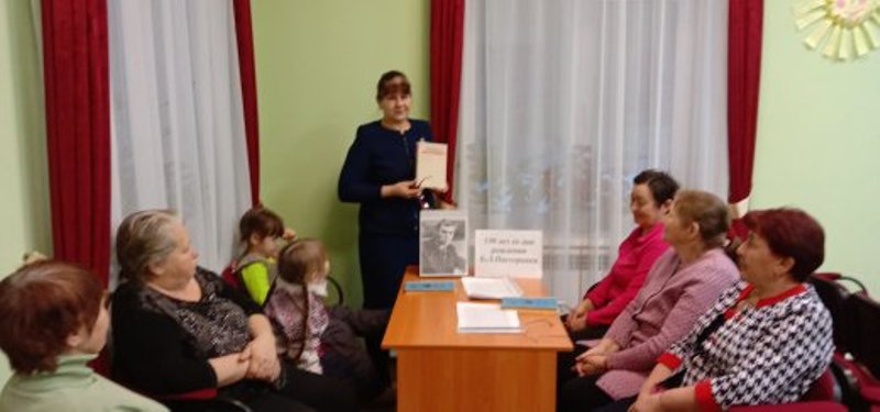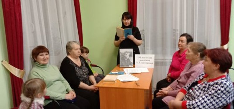 Китапханәче әдәби сәгатьтә катнашучыларны язучының тормыш юлы, иҗаты белән таныштырды, Пастернакның Бондюг эшчеләр поселогында яшәгән, П.К. Ушковларның химия заводы конторасында эшләгән аерым бер чоры турында тәфсилләп сөйләде. Китап укучылар “Доктор Живаго” романының кыскача эчтәлеге белән таныштырылгач, шагыйрьнең “Сайланма әсәрләр” китабыннан иҗат гомеренең төрле елларында язылган шигырьләрен сәнгатьле итеп укыдылар.