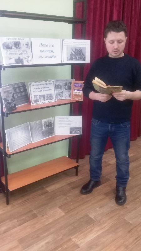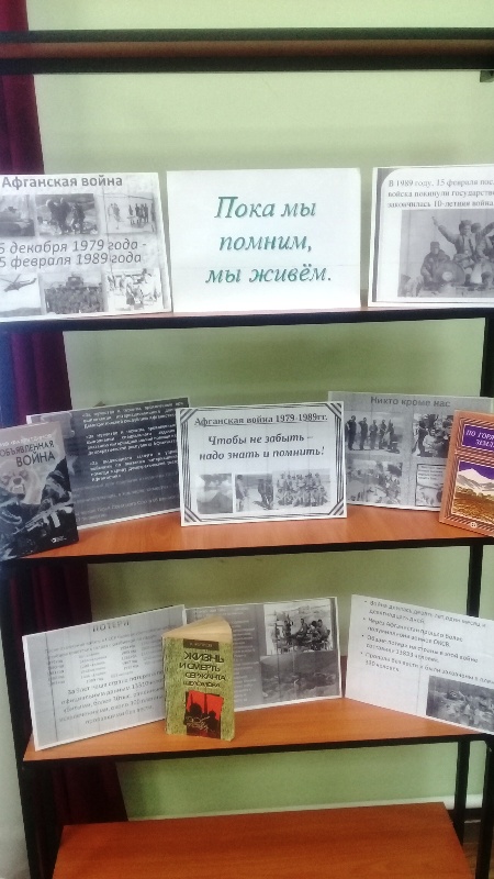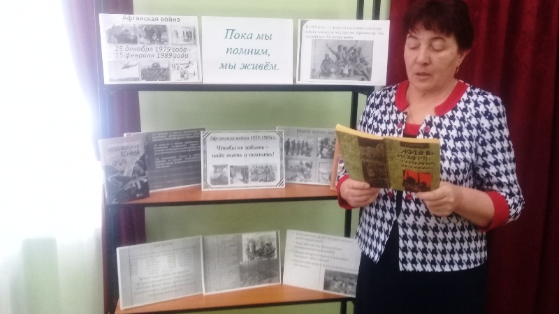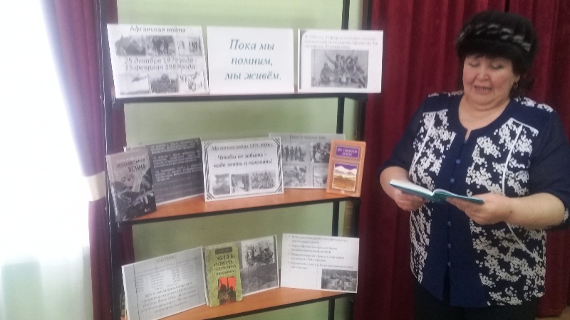 Китапханәче бу көннең илебез тарихында әһәмиятле вакыйга икәнлеген искәртеп күргәзмә белән таныштырды һәм Әфганстан сугышы вакыйгалары сүрәтләнгән китапларны укучыга укырга да тәкдим итте.