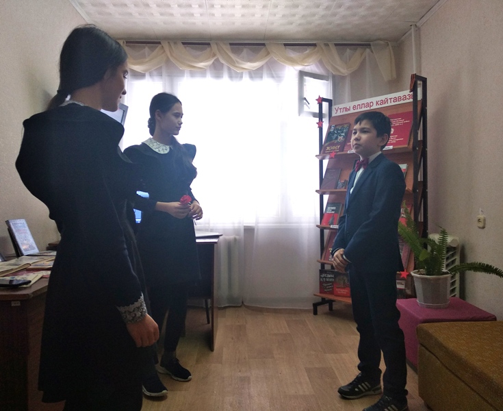 Татар китапханәсе 1нче урта мәктәпнең 6 сыйныф укучылары белән (укытучылары Ганиева А.С.)Җиңүнең 75 еллыгын каршылап, әдәби-музыкаль кичә үткәрделәр.
