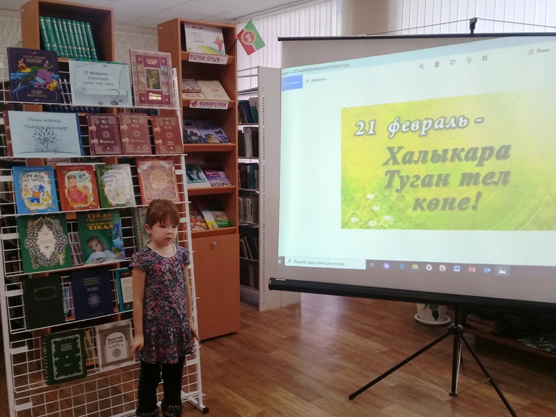 Китапханәче Рузалия Яраханова китапханә буйлап экскурсия үткәрде, күргәзмәләр белән таныштырды. “Иң гүзәл тел – туган тел" күргәзмәсенә күзәтү ясады. Аннары Песәй авыл мәдәният йорты хезмәткәрләре белән берлектә балалар өчен «Туган телем, иркә гөлем» дигән тылсымлы әкият сәгате үткәрелде. Балалар бәйрәм тарихы турында кызыксынып тыңладылар, табышмакларга җавап бирделәр, «Мәкальләр чылбыры», «Түбәтәй» уеннарында катнаштылар. Шигырьләр сөйләделәр. Чара ахырында «Туган телем» җырын башкардылар һәм татар халык әкиятләре буенча мультфильмнар карадылар.