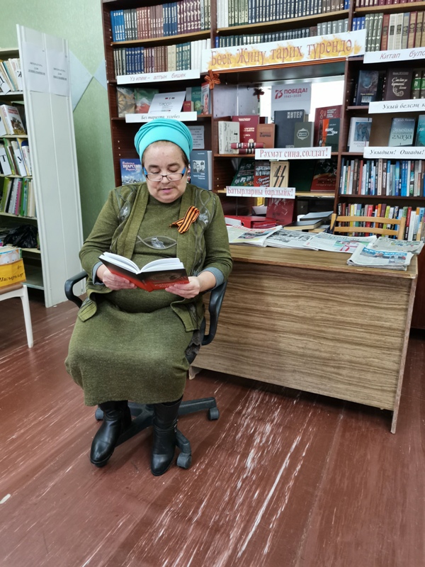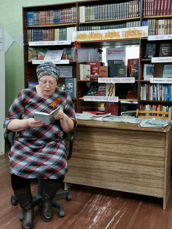 Иң элек китапханәче Ф.Башарова “Хәтер мәңге саклар” дип исемләнгән китап күргәзмәсенә күзәтү үткәрде. Күргәзмәдә Бөек Ватан сугышында катнашкан татар язучыларының китаплары урын алган иде. 4 ел дәвам иткән канкойгыч сугышта Татарстаннан барлыгы 124 язучы катнашкан, шулардан 34-е Ватанны саклап һәлак булган. Китапханәче тоткынлыкта булган язучы Н.Дәүлинең сугыштан соңгы тормышы турында сөйләде, кичәдә катнашучы Р.Мөхетдинова патриот-шагыйрь М.Җәлилнең вакытлы матбугат битләрендә басылган, шәхси тормышына кагылышлы материаллар белән таныштырды. Китапханә укучылары Ф.Галимова, В.Гараева, Ә.Закирова шагыйрьләр М.Җәлил, А.Алиш, Н.Баян, С.Шакир һ.б. шигырьләрен кычкырып укыдылар.