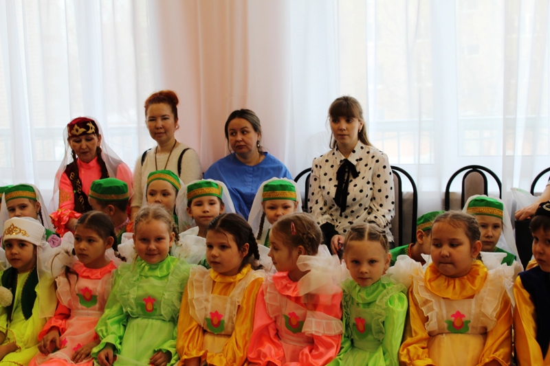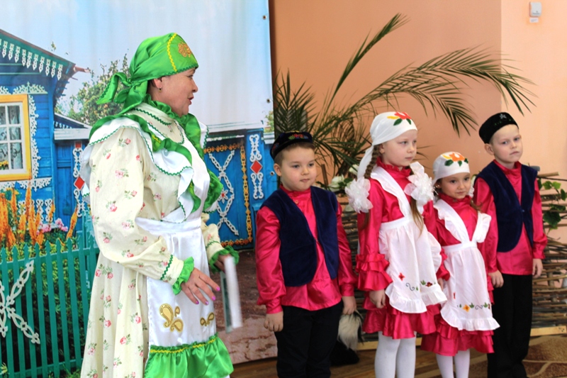 Икенче этапта иң яхшы татар милли уенын күрсәтергә кирәк иде. Мәктәпкәчә белем бирү учреждениеләрендә тәрбияләнүче балалар барысы да якшы башкарды Балалар бакчасында тәрбияләнүчеләр һәм тәрбиячеләр тәкъдим иткән “Су анасы” әсәрләреннән “Әкият” 2 нче балалар бакчасы, 1 нче балалар бакчасы”, “Якты ай” борынгы уеннарыннан алынган сюжетлар бик теләп күрсәтелде. “Чабата” - “Ләйсән” Бизәки балалар бакчасы”; Татар телендә “Самовар” - уеннары 6 нчы “Аленушка” балалар бакчасы; “Зәнгәр чәчәк” уены - “Алтын балык” 7 нче балалар бакчасы” МБДОУ; “Юлчы бабай” милли уены - “Сандугачым” балалар бакчасы; “Без,без,без идек.” уены - 10 нчы “Рябинушка” балалар бакчалары катнашты. Конкурс нәтиҗәләре буенча һәр номинациядә иҗади эшләр җиңүчеләре билгеләнде. Барлык катнашучылар дипломнар, мәктәпкәчә учреждениеләр партнерлардан бүләкләр алды..jpg)