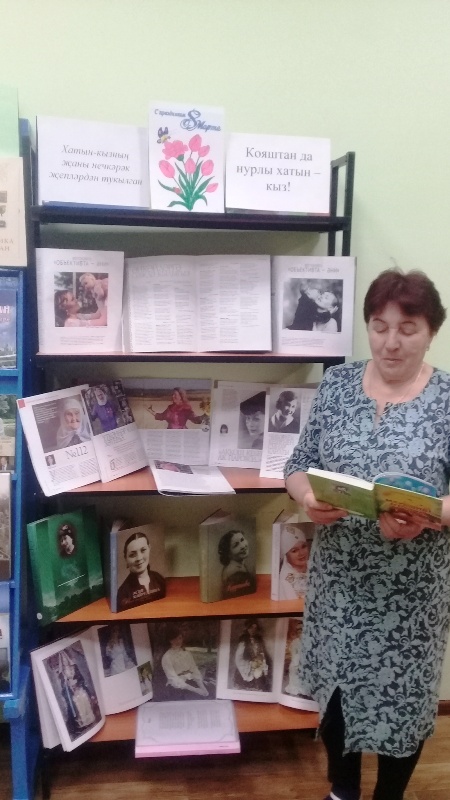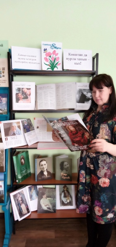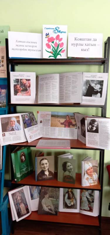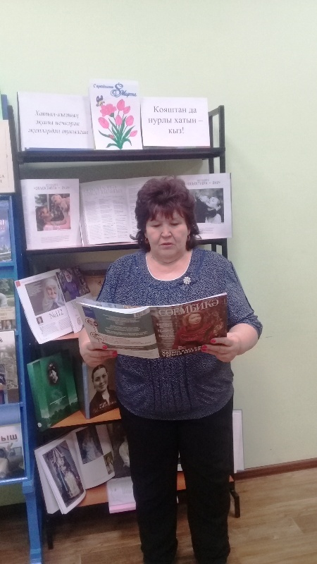 Китапханә укучылары “Сөембикә“ журналыннан аналарга, көчле рухлы хатын-кызларга багышланган рубрикалар, татар халкының күренекле хатын-кызлары: Зөһрә Сәхабиева, Фәридә Кудашева, Сара Саадыйкова, Зифа Басыйрова турында язылган китаплар һәм рәссамнар: Искәндәр Рәфыйков, Гөлсем Рахманкулова һәм Игор Смольниковның китапларыннан хатын - кызларга багышланган картиналары белән таныштылар һәм берничә китап - журналны укырга алдылар.