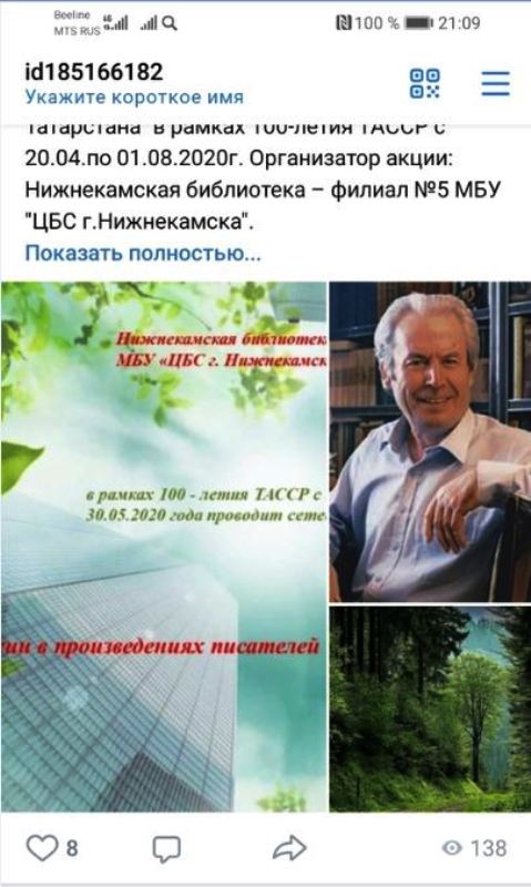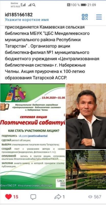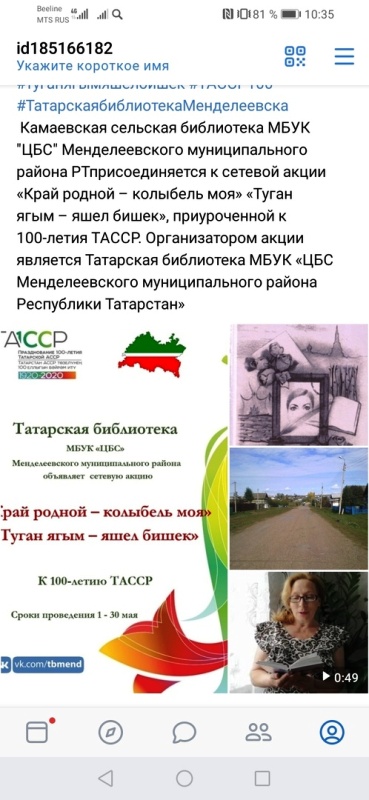 Камай авылы китапханәсе ТАССРның 100 еллыгы уңаеннан Яр Чаллы шәһәре «Үзәкләштерелгән китапханәләр системасы» муниципаль бюджет учреждениесенең 1 нче номерлы китапханә-филиалы оештырган “ Шигъри сабантуй” , Түбән Кама китапханәсе - "Түбән Кама шәһәре ҮКСы" МБУнең 5 нче филиалы оештырган “Татарстан язучылары әсәрләрендә экология темасы” , Татарстан Республикасы Менделеевск муниципаль районы ҮКСы " МБУнең татар китапханәсе» оештырган «Край родной – колыбель моя» «Туган ягым – яшел бишек» акцияләрендә катнашты.