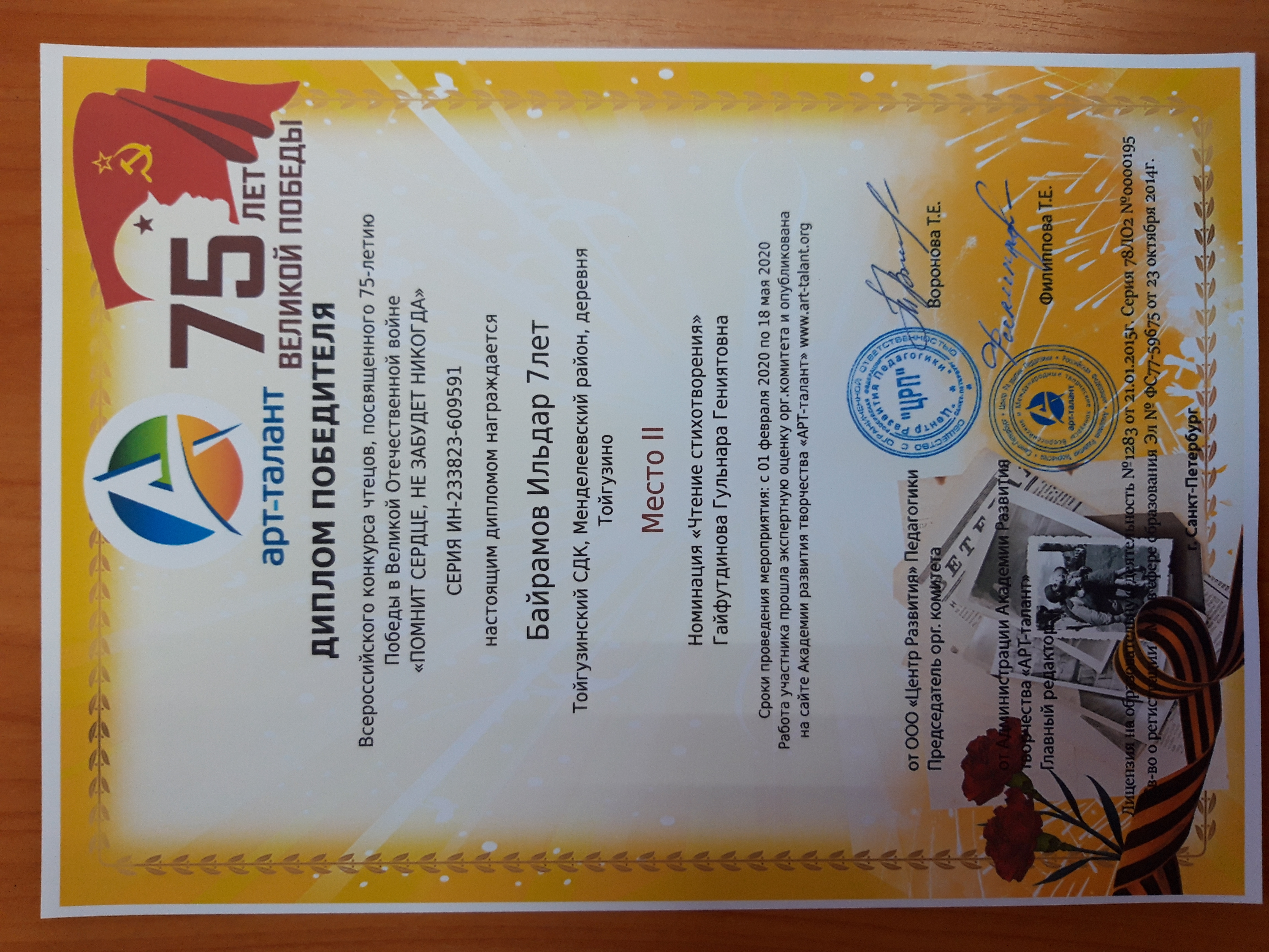 Тойгуҗа авыл җирлеге Бөек Ватан сугышында җиңүнең 75 еллыгына багышланган "Йөрәкне хәтерли, беркайчан да онытмаячак" дип исемләнгән Бөтенроссия нәфис сүз осталары конкурсында катнашты һәм 2 нче урынны яулады. Җиңүнең 75 еллыгына багышланган балалар конкурсларына йомгак ясалды. Тойгуҗа авыл мәдәният йорты директоры Гайфетдинова Гөлнара Тойгуҗа авылында яшәүче Байрамов Илдарны 7 ел әзерләгән иде. Видеога шигырьләр сөйләп, конкурста катнашып, ул безнең халыкның Бөек батырлыгын бәяли, сугыштан кайтмаган, илебез һәм безнең киләчәгебез өчен һәлак булган тыл хезмәтчәннәрен хәтерли.