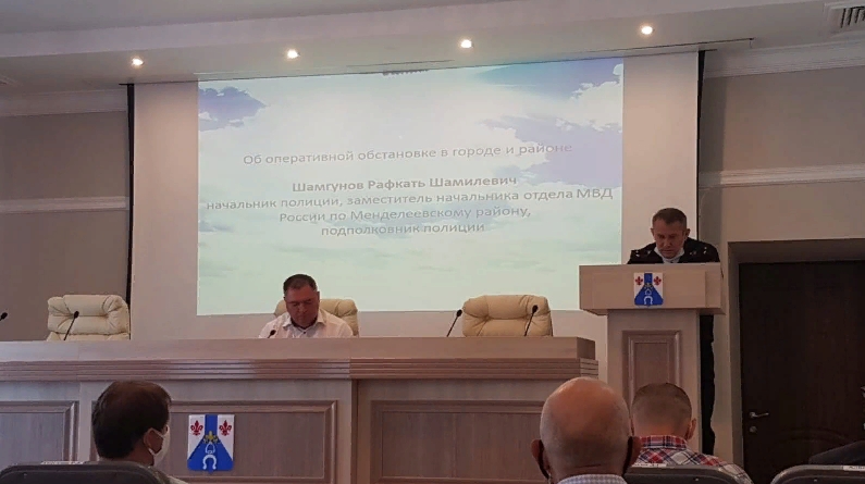 Аннары киңәшмә барышында шәһәрдә һәм районда оператив хәлләр турында мәгълүмат бирелде - полиция начальнигы, Россия Эчке эшләр министрлыгының Менделеевск районы буенча бүлеге начальнигы урынбасары, полиция подполковнигы-Шамгунов Рәфкать Шамил улы.
