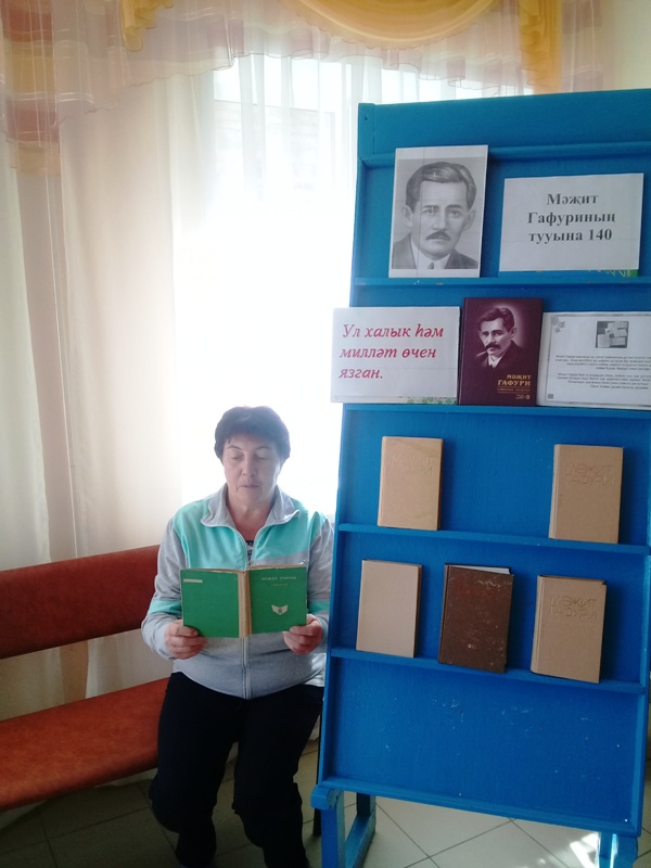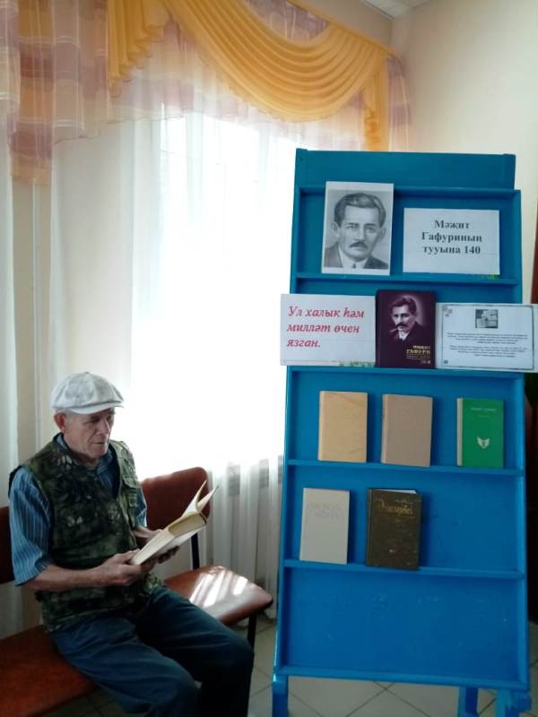 Китапханәче көн дәвамында китап укырга килүчеләрне күргәзмәгә куелган китаплар белән таныштырды. Китап укучылар арасында шагыйрьнең кайбер шигырләрен, мәсәлләрен укып күрсәтүчеләр дә табылды, шулай ук китапханәче Сафина А.А. “Кара йөзләр“ повестенң эчтәлеге белән таныштырып, әсәрдән өзек тә укып күрсәтте. Күргәзмәдән язучының иҗаты белән кызыксынучы бер укучы ”Сайланма әсәрләр” китабын укырга да алды.