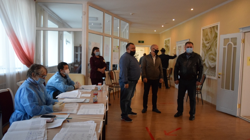 Менделеевск районы башлыгы Валерий Чершинцев һәм ТР Туризм буенча дәүләт комитеты рәисе Сергей Иванов шәһәрнең сайлау участокларын карап чыктылар һәм тавыш бирү барышын тикшерделәр.