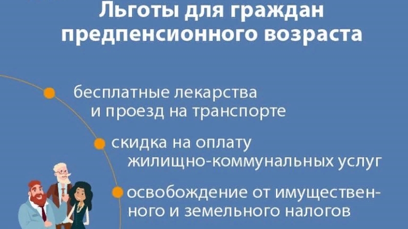 Россия Федерациясе законнары белән пенсия алды яшендәге гражданнар өчен ташламалар каралган: еллык диспансеризация узу өчен 2 түләүле көн, хезмәт мәшгульлегенең өстәмә гарантияләре, эшсезлек буенча югары пособие, һөнәри яңадан укыту.