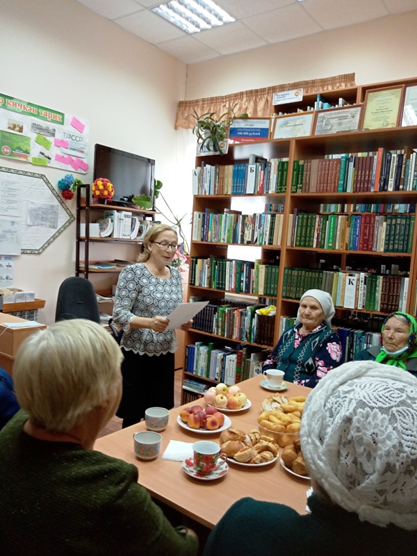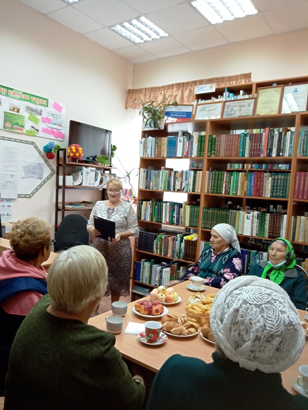 Китапханәче Г.Галимуллина өлкәннәргә котлау сүзләре җиткерде, Г.Зиннатуллина башкаруындагы җыр аларга бәйрәм бүләге булып яңгырады. Өлкәннәребез үзләре дә кичәдә бик актив катнаштылар, табышмакларга җаваплар таптылар. Р.Юзикиева, С.Зиннурова һәм Р.Гатиятуллиналар башкарган җырлар бәйрәм кичәсенә ямь өстәде. Бәйрәмнең кайсы да җанга ял алып килә. Шушы бәйрәм көне өлкәннәребезнең күңеленә шатлык, тәннәренә сихәтлек, өйләренә иминлек алып килсен.