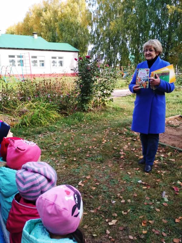 Китапханәче укучылар белән көзнең үзенчәлекләре, башка фасыллардан ни белән аерылып торуы турында сөйләште, рус язучыларының “Времена года” (Ел фасыллары) китабыннан өзекләр,шигырьләр укыды. Нәниләр Н.Каштанның “Кайсы ай бу?”, Л.Шәехның “Безнең урманда” китапларында бирелгән шигъри табышмакларга бик теләп җавап эзләделәр. Чара соңында балалар китапханәчегә табигать турында шигырьләр дә укып күрсәттеләр, тәрбиячеләре Л.Гилязова белән берлектә бүгенге көннең һава торышын төгәл итеп сүрәтләделәр. Китапханәче балаларга зурлар булгач та кызыксынучан, күзәтүчән булып калуларын теләде, алып килгән табигать турындагы китаплары белән таныштырды.