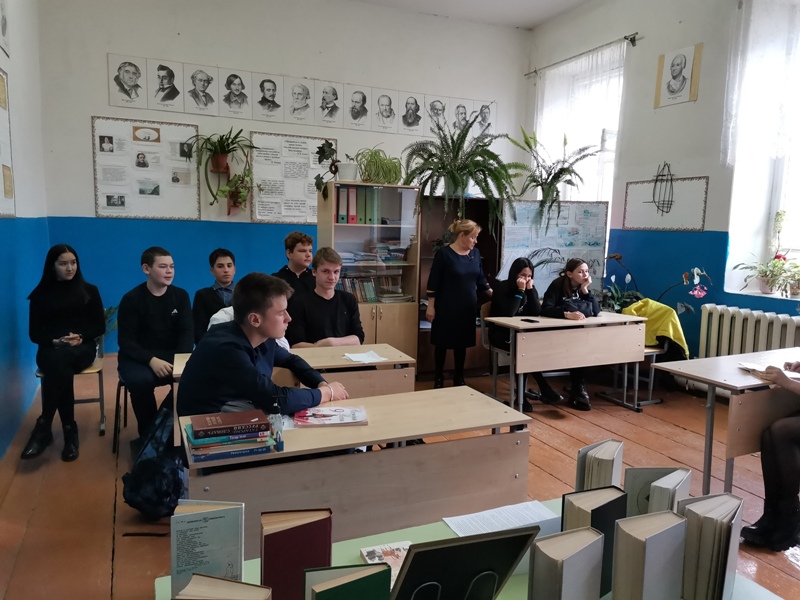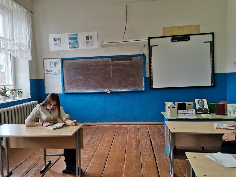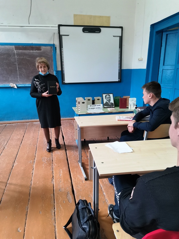 Чарада мәктәпнең югары сыйныф укучылары катнашты. Иң элек китапханәче Ф.Башарова катнашучыларны кыскача язучының тормыш юлы белән таныштырды, иҗаты турында сөйләп үтте, “И след мой в мире есть” дигән китап киштәсендәге китапларга күзәтү тәкъдим итте. Укучылар язучының төрле елларда язылган шигырьләрен һәм “Холодная осень” хикәясен укыдылар. Соңыннан рус әдәбияты укытучысы Р.Каримуллина чараны йомгаклап тыңланган әсәрләргә анализ ясады.