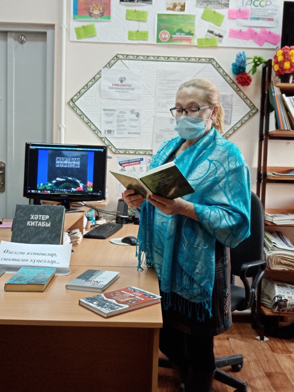 Китапханәче Галимуллина Г.М. бу елларның фаҗигасе һәм репрессия корбаннары турында сөйләде, китап күргәзмәсе белән таныштырды.Әлеге чарада репрессияләнгән шагыйрьләрнең шигырьләре укылды. Күп кешеләрнең язмышын җимергән мондый фаҗигаләр башка кабатланмасын иде.