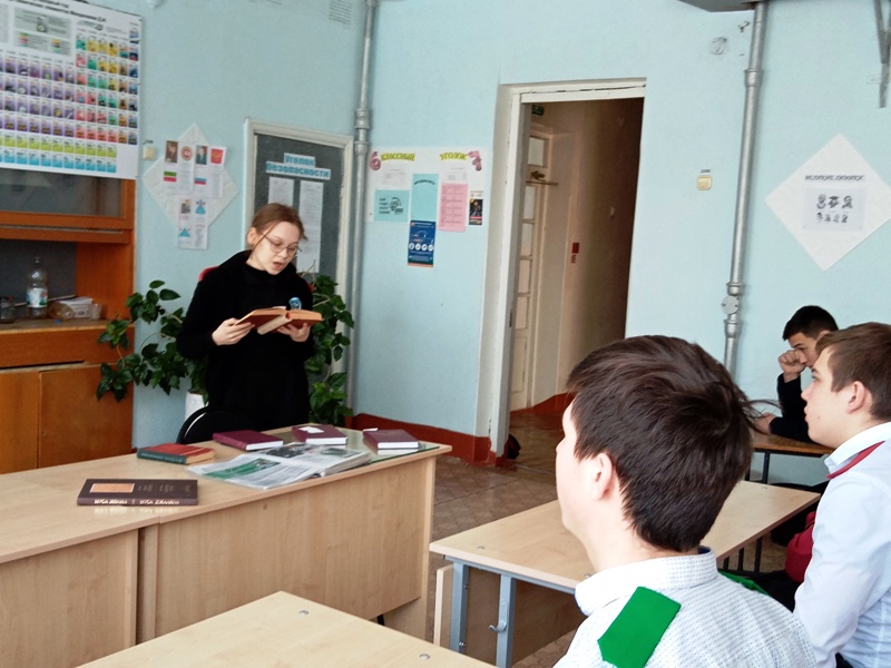 Китапханәче Г.Галимуллина шагыйрьнең тормыш юлы белән таныштырды. Укучылар М.Җәлилнең шигырьләрен укыдылар. Җәлилнең тормышы, иҗаты җырга тиң.Җыр үлемсез булган кебек, аның шигырьләре дә, исеме дә үлемсез.