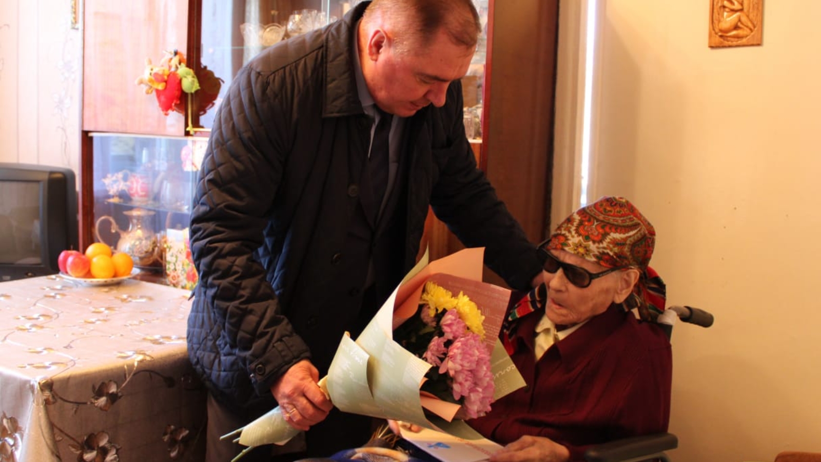 Сугыш ветеранын туган көне белән район башлыгы Валерий Чершинцев, Ветераннар советы рәисе Любовь Сорокина һәм район социаль яклау бүлеге начальнигы Фаина Козырева котладылар. Валерий Сергеевич юбилярга чәчәк бәйләме һәм истәлекле бүләк тапшырды.