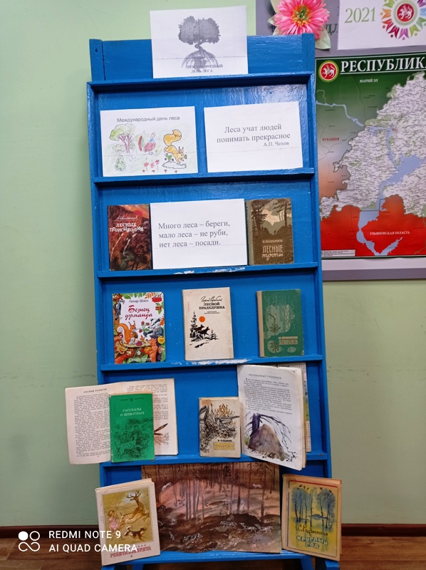 Китап укучыларга китапханәче урманнарның планетабыз, кешелек дөньясы өчен әһәмияте, аларга сакчыл караш булырга тиешлеге, урманда үзеңне тоту кагыйдәләре турында сөйләде. Төрле агач, кош, хайван рәсемнәреннән урман ясап “Урманны саклагыз” дигән плакат ясадылар. А. Севастьяновның “Урман маҗаралары”, В. Подгорновның “Урман сукмаклары” китабыннан кечкенә хикәяләрне укыдылар.