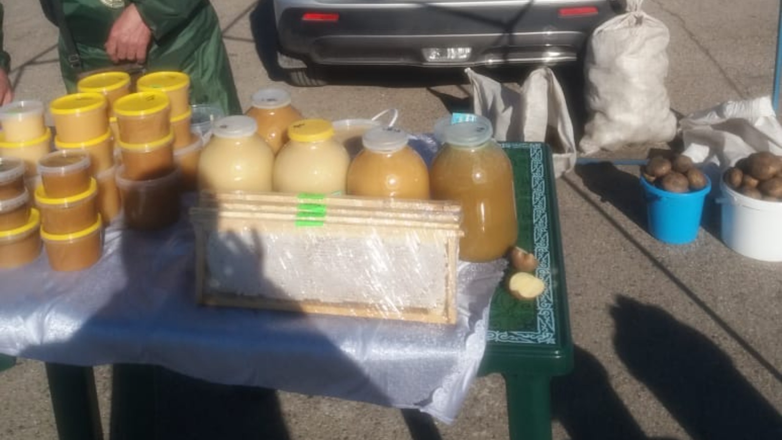 Миндубаев КФХсы үз продукциясен тәкъдим итте - ит продукциясе белән 4 нокта, Сейталиев КФХ - 2 кошчылык продукциясе , 3 ЛПХ - бал, кошчылык продукциясе, сөт продукциясе белән.