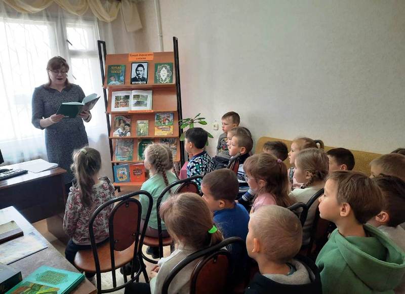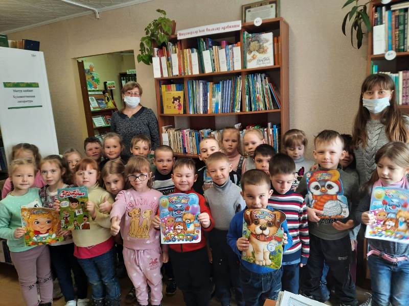 Китапханәче Хафизова Г.Р. сабыйларны китапханә белән, күргәзмәләр белән таныштырды. Балалар Тукайның тормыш юлы, балачагы турында тыңладылар, Г.Тукай әсәре буенча эшләнгән “Шаян песи” мультфильмын карадылар. Галиәхмәтов Артур белән Миронова Аделина “Елның дүрт фасылы”, Зырянова Карина һәм Әхмәтҗанов Риналь “Бала белән күбәләк”, Курятникова Злата “Кошларга”, Комарова Мирослава “Җир йокысы”, Хаматов Самир “Безнең гаилә” шигырьләрен татар һәм рус телләрендә сөйләделәр. Бакча балалары китапханәне бик ошаттылар, тагын килергә теләк белдерделәр.