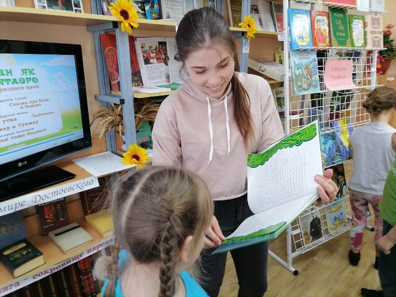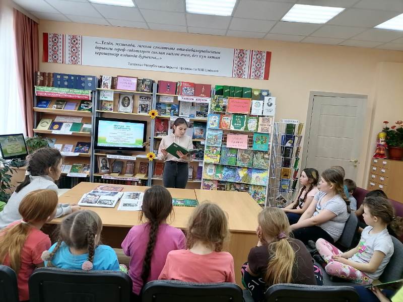 “Туган тел”, “Бала белән күбәләк”, “Эш беткәч уйнарга ярый” шигырьләрен, “Шүрәле” әкиятеннән өзекләр укыдык. “Ай һәм Кояш”, “Су анасы” әкиятләре буенча төшерелгән мультфильмнар карадык. Габдулла Тукайның бай әдәби мирасы белән таныштык.