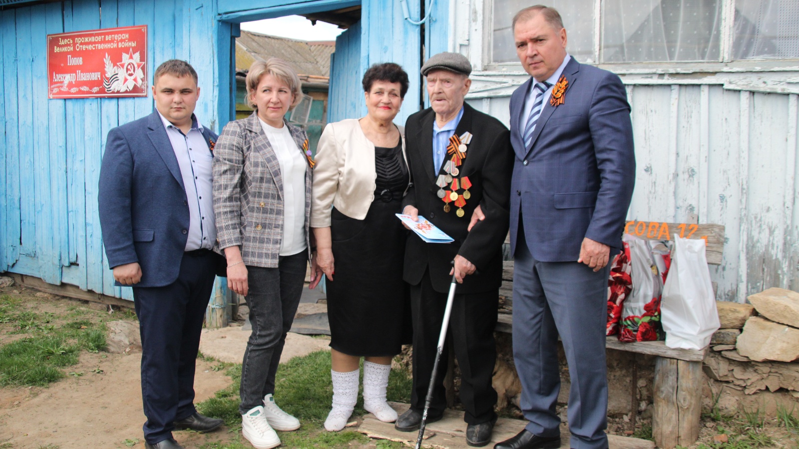 Район башлыгы Валерий Чершинцев Ветераннар советы рәисе Любовь Сорокина һәм социаль яклау бүлеге җитәкчесе Фаина Козырева белән берлектә Бөек Ватан сугышында катнашучыларны Җиңү көне белән котлады.
