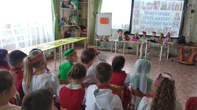 Татар китапханәсе хезмәткәре Гөлназ Хафизова 7 нче “Алтын балык” балалар бакчасы татар теле тәрбиячесе Вәсилә Нуриева белән берлектә, “Дуслык белән көчлебез” дигән фольклор сәгате үткәрделәр.