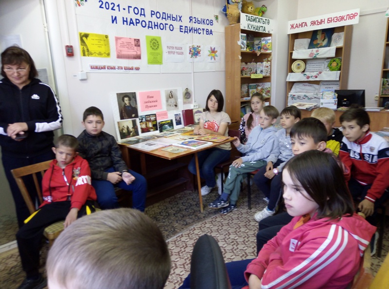 Игелекле, күңелле һәм гыйбрәтле, алар озак еллар безнең дусларыбыз һәм киңәшчеләребез булалар. Әкият геройлары үз гамәлләре белән безгә яхшылык, хакыйкатьне явызлыктан аерырга, гадел, кыю булырга өйрәнергә ярдәм итә. Балалар игътибарына «Безнең яраткан Пушкин» дигән китап күргәзмәсе тәкъдим ителде. Башта балалар Александр Сергеевичның барлык әкиятләрен искә алырга тырышты. Балалар биш Пушкин әкиятен яхшы белә икән: «Алтын әтәч турында әкият», «Поп һәм аның хезмәткәре Балда турында әкият», «Балыкчы һәм балык турында әкият», «үле Царевна турында әкият», «Патша Салтан турында әкият». Китапханәче балаларны тагын бер әкият – «Аю турында әкият» белән таныштырды. Чараның якты финалы булып «Балыкчы һәм балык турында әкият» дигән мультфильм күрсәтелде.