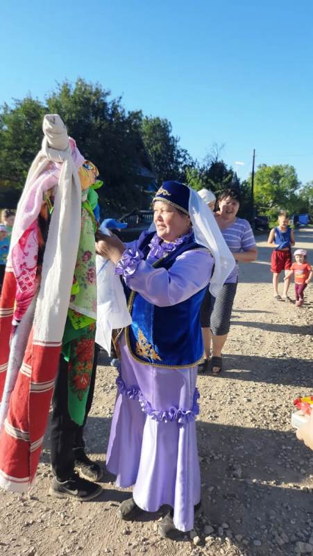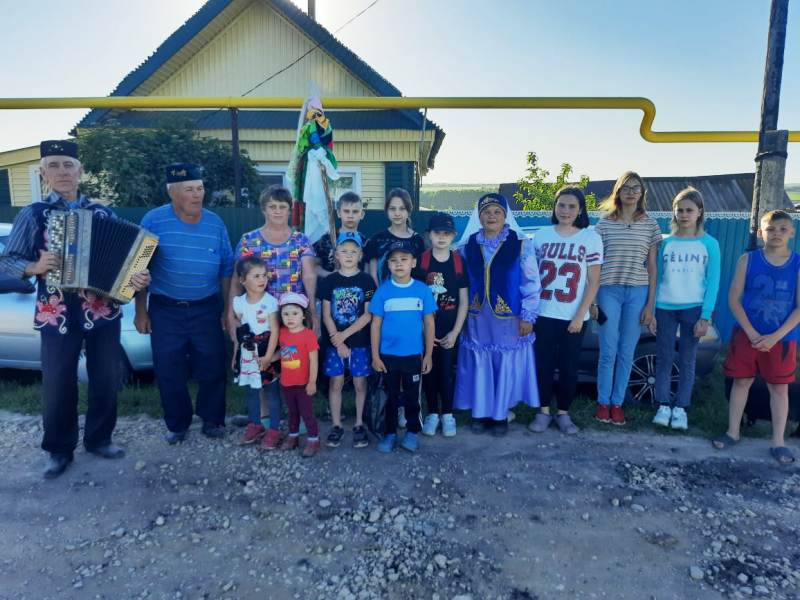 Зурлар һәм балалар һәрбер йортка кереп, җырлап-биеп, бүләкләр җыйдылар. Гармун моңнары астында авылдашларның барысын да Сабантуй бәйрәменә чакырып йөрделәр.