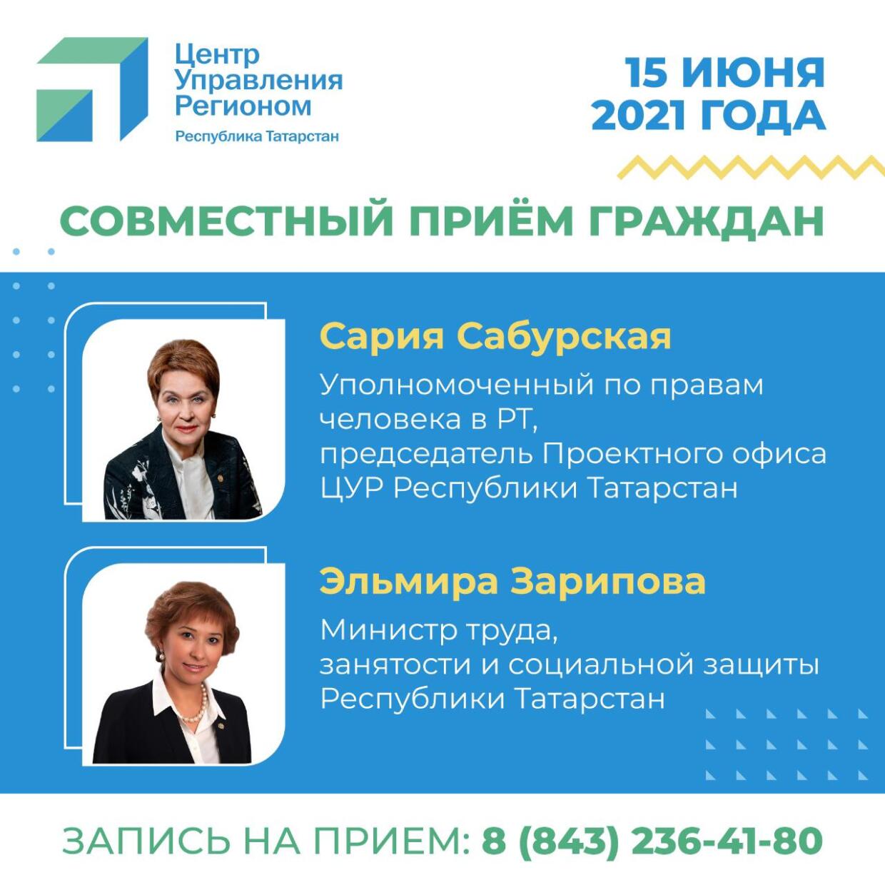15 нче июньдә Татарстан Республикасында кеше хокуклары буенча вәкаләтле вәкил һәм Татарстан Республикасы хезмәт, мәшгульлек һәм социаль яклау министры гражданнарны бергәләп кабул итә.