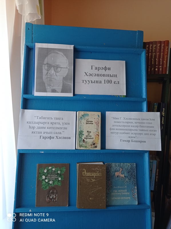 Тойгуҗа авылы китапханәсендә татар язучысы Гарәфи Хәсәновның тууына 100 ел тулу уңаеннан аның китапханәдәге китапларына “Табигать җырчысы дип аталган китап күзәтү үткәрелде.