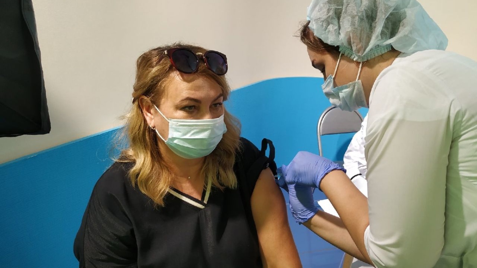 Начальник Татьяна Алексеева һәм белгеч Зөлфия Романова район үзәк хастаханәсенең мобиль бригадасы килгәч, редакциядә прививка ясаттылар.