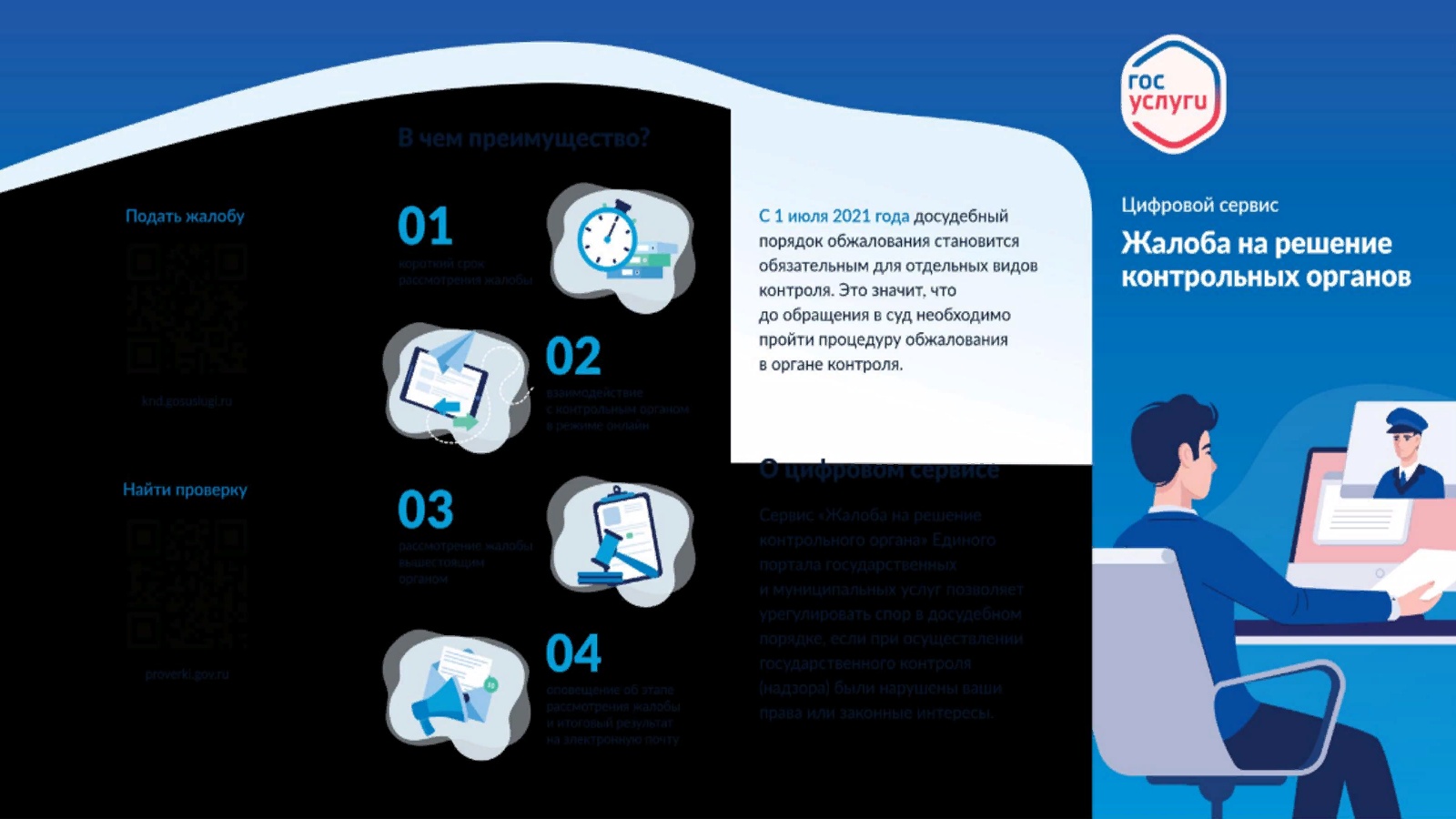 Дәүләт һәм муниципаль хезмәтләрнең бердәм порталының "Контроль органы" карарына карата шикаять " сервисы, дәүләт контролен (күзәтчелеген) гамәлгә ашырганда, Сезнең хокукларыгыз яки законлы мәнфәгатьләрегез бозылган очракта, бәхәсләрне судка кадәр тәртиптә җайга салырга мөмкинлек бирә.