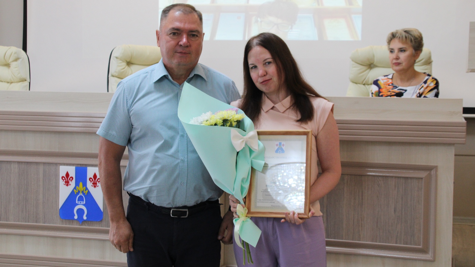Күпьеллык намуслы хезмәте, Менделеевск районының авыл хуҗалыгы үсешенә зур өлеш кертүе өчен һәм юбилее уңаеннан авыл хуҗалыгы һәм азык-төлек идарәсенең 3 разрядлы өлкән белгече Ирина Ишморатова бүләкләнде.
