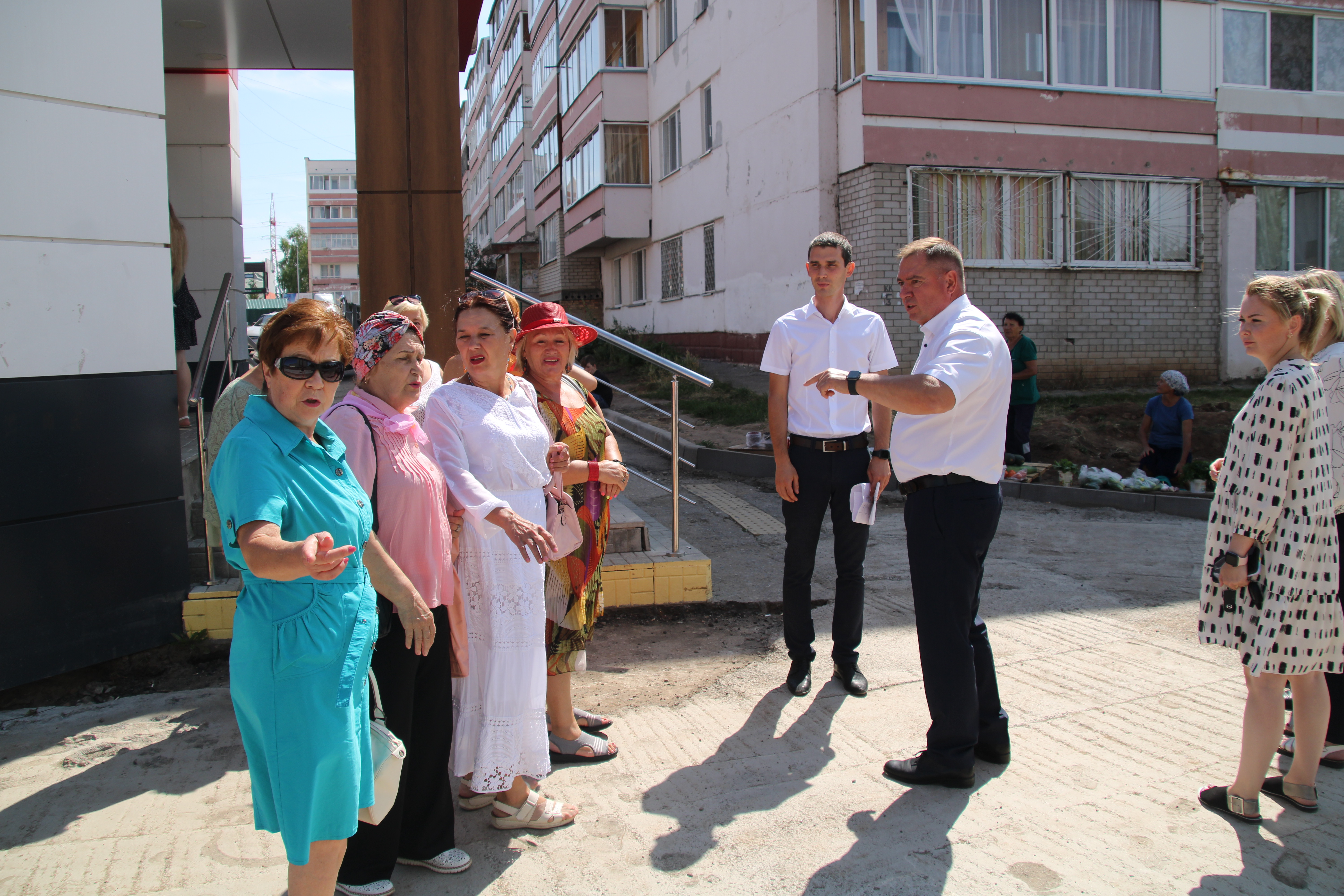 Делегация шулай ук микрорайонда яшәүчеләр белән дә аралашты, җыелучылар быел Химиклар урамы, 2 адресы буенча төзекләндерелә торган ишегалдын карап чыктылар, шулай ук башкарылган эшләр буенча төп моментлар турында фикер алыштылар.