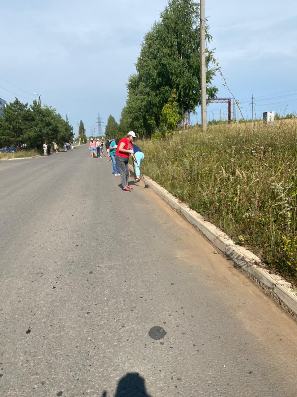 4 августта Менделеевскида Администрация, учреждение һәм оешма хезмәткәрләре территорияне җыештырырга чыктылар.