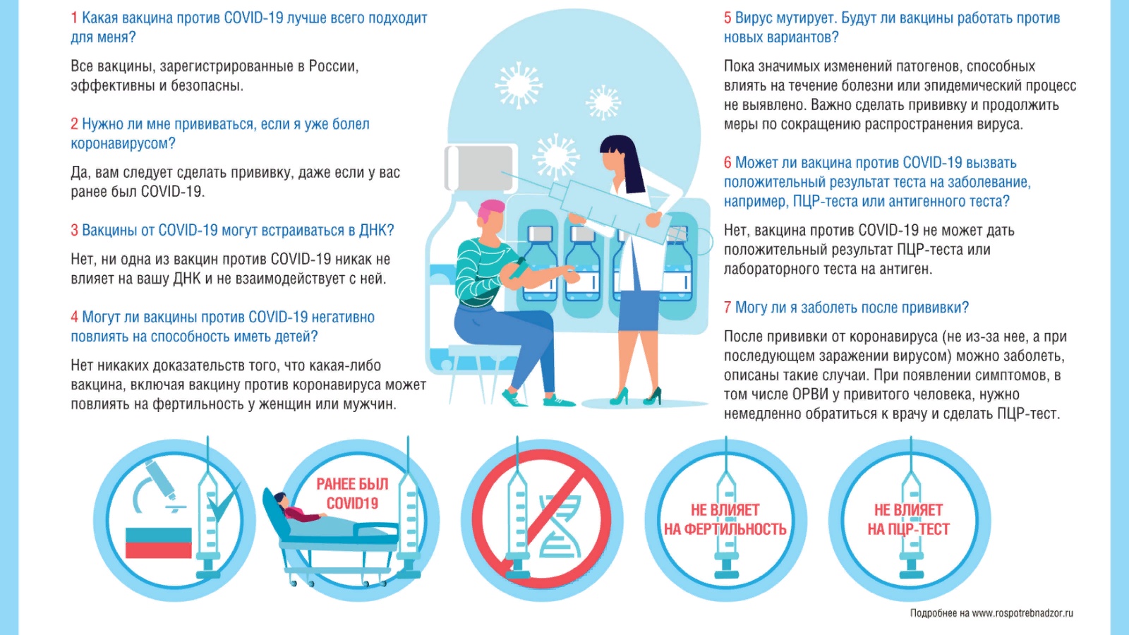 Барлык вакциналар гражданлык әйләнешенә вакцинаны кертү өчен кирәкле клиник сынауларны төгәлләде. Россиядә теркәлгән вакциналар нәтиҗәле һәм куркынычсыз.