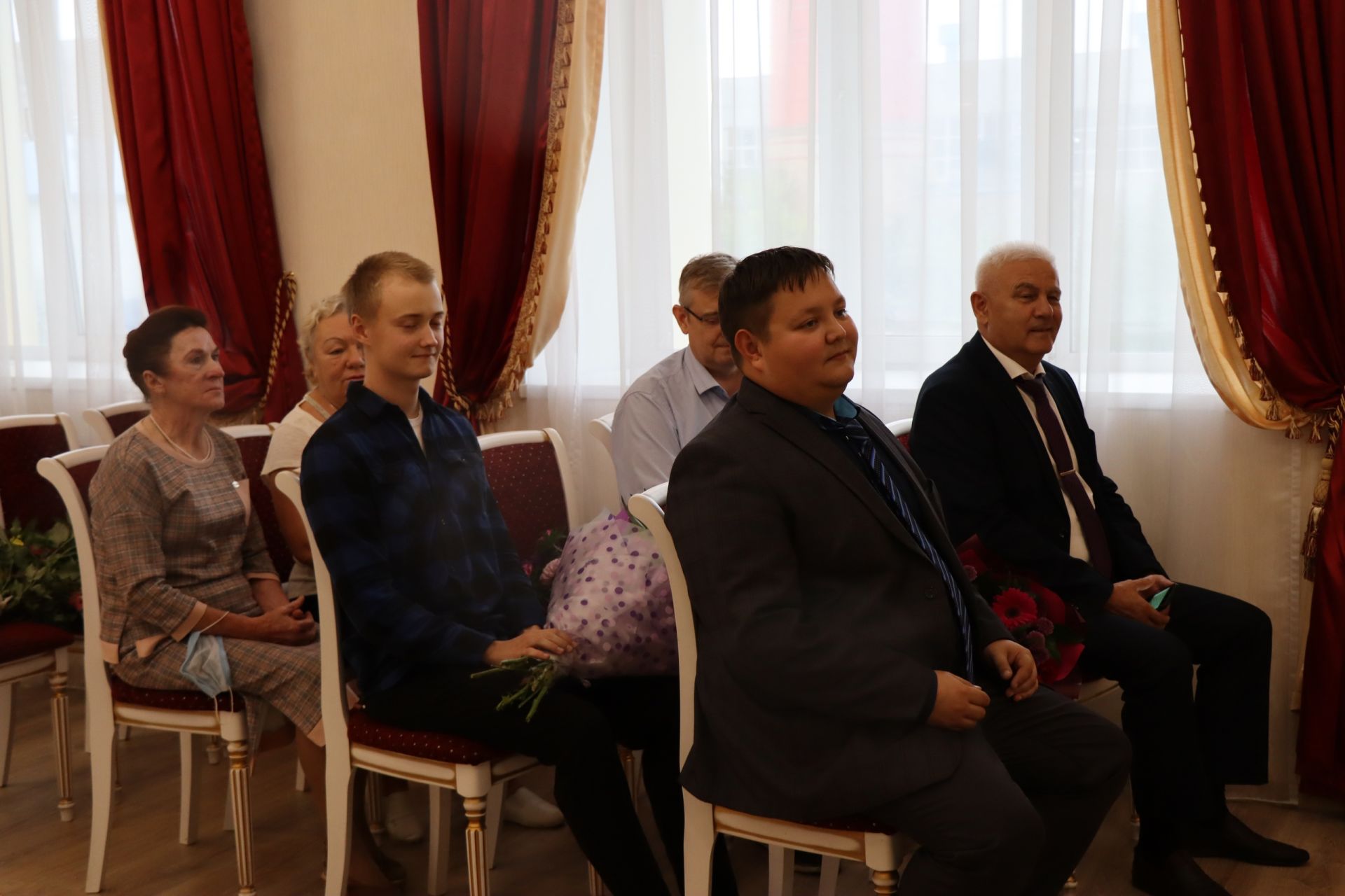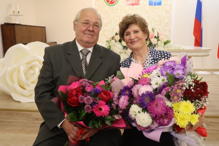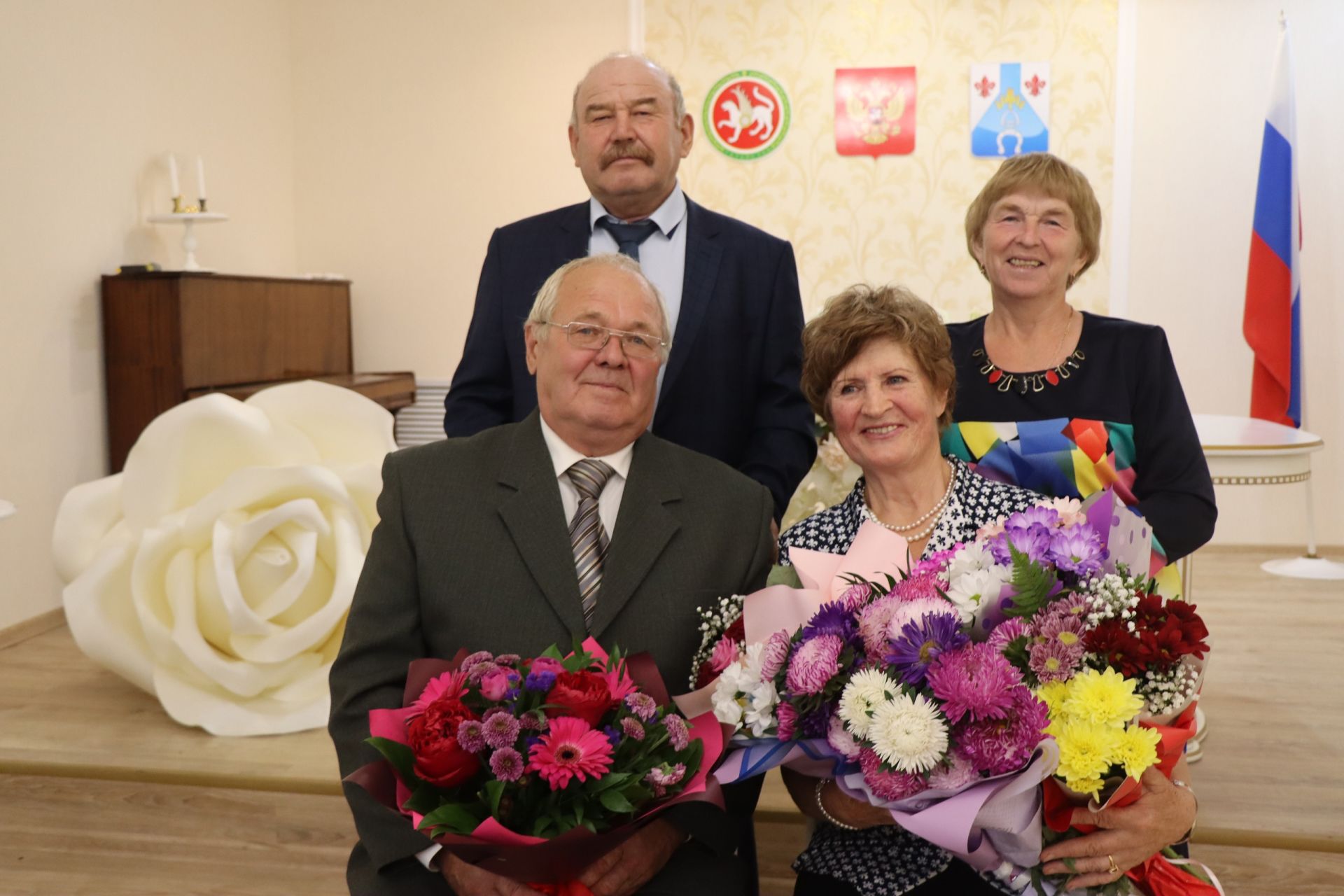 Ярты гасырдан соң ирле-хатынлы яңадан ЗАГС бүлегенә Мендельсон Туй маршы астында керделәр. Юбилярларга котлау сүзләре белән Башкарма комитет җитәкчесе урынбасары Айдар Сәфәргалин, ЗАГС бүлеге җитәкчесе Татьяна Алексеева, Енабердино авыл җирлеге башлыгы Евгений Никифоров, хезмәттәшләре, туганнары, якыннары, дуслары мөрәҗәгать иттеләр.