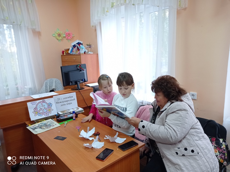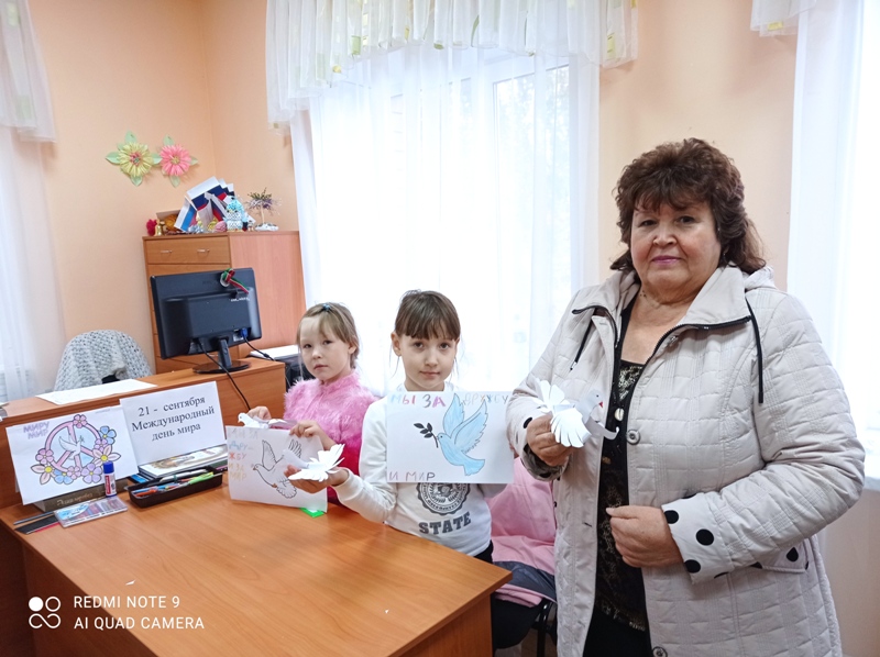Балалар кәгазьдән тынычлык күгәрчене ясау белән беррәттән, тынычлык көненә багышланган рәсем дә буядылар һәм үз теләкләрен җиткерделәр. Р. Валиеваның “Йолдызстан батыры” (“Звездный витязь”), В. Даньконың “Кем дөньяда иң газиз? (“Кто на свете всех родней”) китапларыннан балачак, тынычлыкка багышланган шигырьләрне укыдылар.
