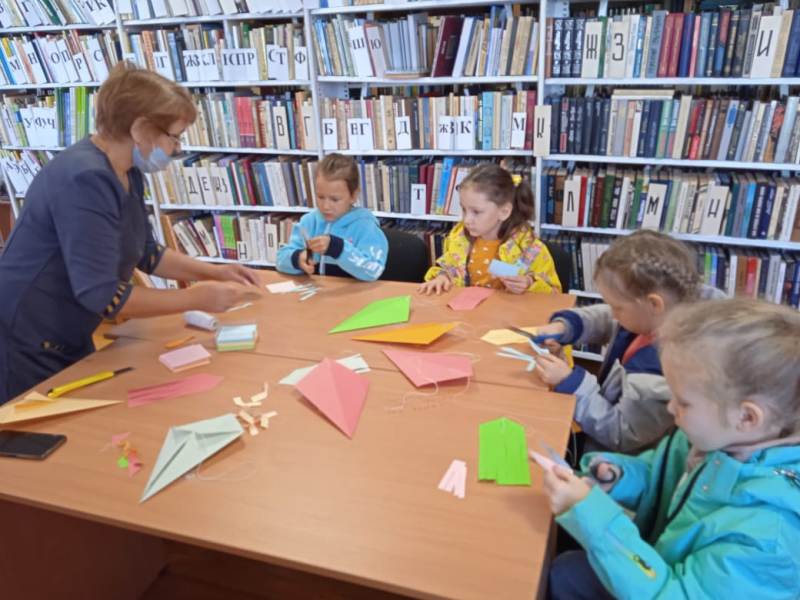 Иң элек китапханәче агымдагы 2021 ел- Фән һәм технологияләр елы булуын, без бүген бик җиңел кулланучы һәм тормышыбызны кызыклы итүче приборларны – телевизор, суырткыч, компьютер, телефон һ.б. галимнәр уйлап табуы турында сөйләде, табигать күренешләре һәм хайваннар тормышыннан кызыклы викторина үткәрде. Аннары бергәләп төсле кәгазьләрдән һава еланнары ясарга чакырды. Эш барышында кечкенәләр үзләренең эш коралларын белеп куллануларын, тырыш һәм төгәл булуларын күрсәттеләр. Ясаган “еланнары” да матур, тигез булды. Ачык һавада төсле “һава еланнары”н очыртып уйнау балалар күңеленә рәхәтлек бирде һәм шатлык өстәде.