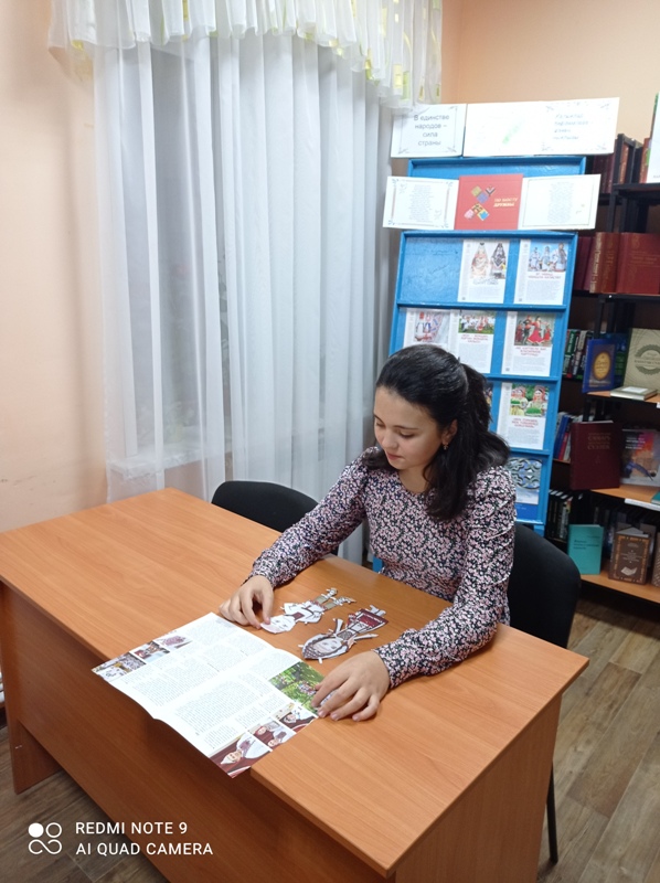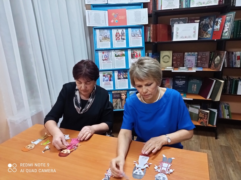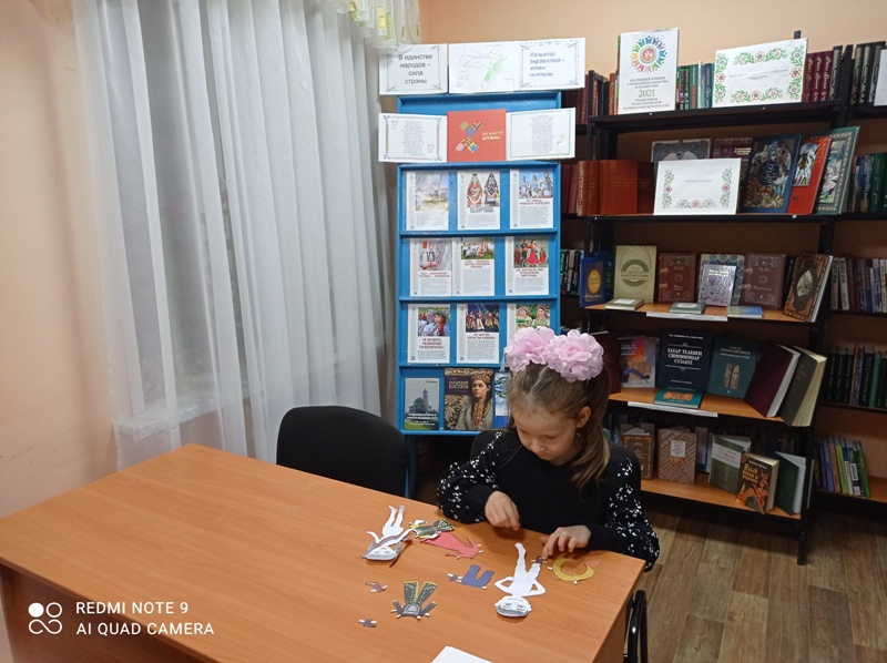 Китапханәче китап сөючеләрне күргәзмә әсбаплары белән таныштырды. Тойгуҗа авылында яшәүче күпчелек милләт вәкилләре: татар, рус, удмурт халкының милли йолалары турында, милли ризыклары, киемнәре турында сөйләштеләр. Күргәзмәне караучылар курчакларны милли киемгә киендереп, кайсы милләт икәнлеген дә бик дөрес билгеләделәр.