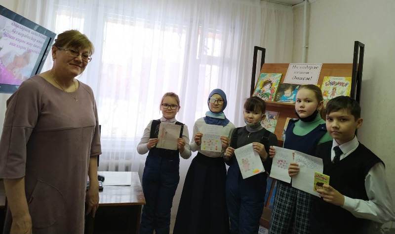 Татар китапханәсендә 7 нче мәктәпнең 4 сыйныф укучылары белән (укытучылары: Әминова Г.Ф.) “Иң кадерле кешем – әнием” дигән темага инша язу бәйгесе үткәрелде.