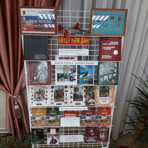Ватан Геройлары көне – истәлекле көн, яшь буынга патриотик тәрбия бирү максатыннан Иске Гришкин авылы китапханәсендә “Хәтер һәм дан” исемле китап күргәзмәсе янында әңгәмә уздырылды.
