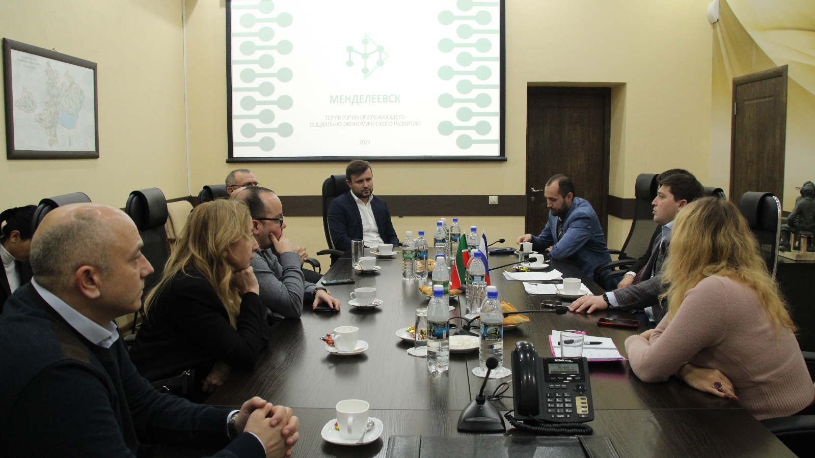 Радмир Беляев, икътисад, АСИҮТ һәм эшмәкәрлекне үстерү буенча Башкарма комитет җитәкчесе урынбасары вазифаларын башкаручы Ленар Әхмәтов белән бергә кунакларга, тулаем алганда, Менделеевск географик үзенчәлекләре, халык структурасы, икътисадый күрсәткечләр, районның алдынгы предприятиеләре, кадрлар потенциалы, социаль инфраструктура турында сөйләделәр.