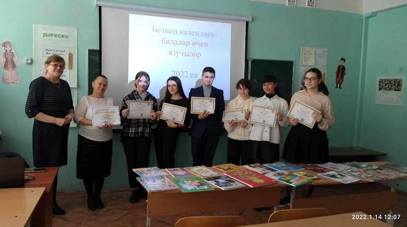 Башта “Яраткан китабымның авторына хат” Рәсәй күләм конкурсында катнашучы балаларга Дипломнар һәм кызыксындыру бүләкләре тапшырылды. Китапханәче укучыларны 2002 ел юбилярлары: балалар өчен язучылар һәм аларның китаплары белән таныштырды. Укучылар кызыксынып тыңладылар, ошаган басмаларны карап, уку өчен сайладылар.
