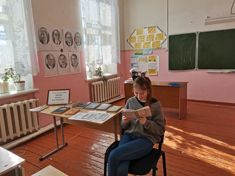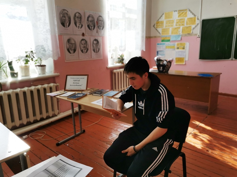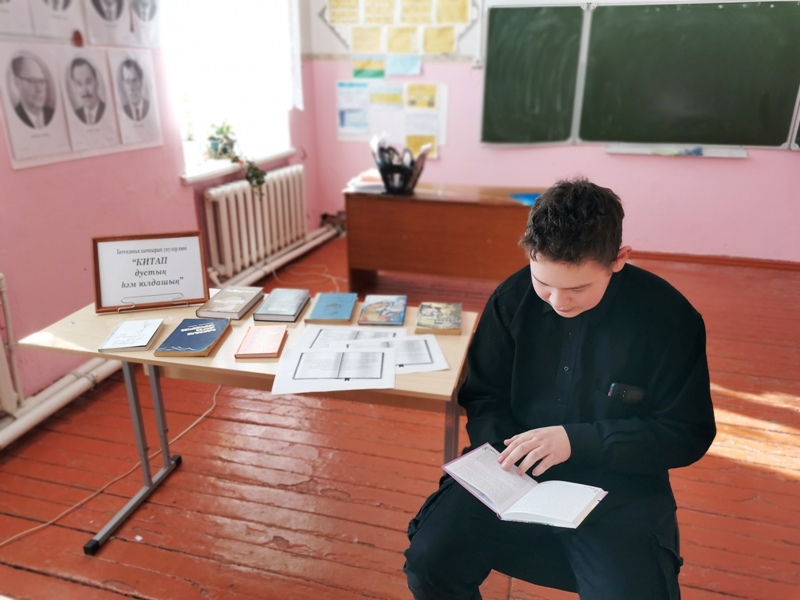 Китапханәче алдан укылычак китаплардан мәгънәле һәм укучылар игътибарын җәлеп итәрдәй өзекләр әзерләде, әдәбиятны “Китап – дустың һәм юлдашың” дигән күргәзмәгә урнаштырды. Һәр укучы күңеленә хуш килгән өзекне сайлап алды, дәвамын китаптан кычкырып укыды. Монда детектив та, мәхәббәт лирикасы да, сугыш, дуслык-туганлык, тәрбия темасын яктырткан әдәбият та бар иде. Флешмоб кызыклы һәм файдалы узды.