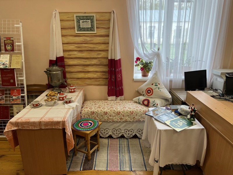 2022 ел - Россия халыклары мәдәни мирасы елы. Аның максаты - илдә яшәүче халыкларның гореф-гадәтләрен, тарихи мирасын, этномәдәни күпкырлылыкны саклап калу. Без – татарлар. Татар гомер-гомергә тырыш, эшчән, кунакчылхалык булган, матурлыкка омтылган. Матурлап киемнәр тегеп, аларга матур бизәкләр ясап, чигеп киенгәннәр алар: аякларында матур итеп бизәлгән читекләр, башларында чигелгән түбәтәйләр, калфаклар булган. Шулай ук, кулыннан һичбер вакыт эш төшмәгән татар хатыны ашъяулык, сөлге, намазлык чиккән, тула баскан, келәм, палас тукыган. Чиста-пөхтә йортын шулар белән бизәп гаиләсе өчен уңай мохит тудырган ул. Китапханәче Ф. Бәшәрова әзерләгән фотозонада Бәзәкә хатын-кызларының буыннардан-буыннарга күчеп килгән, халкыбызның рухы, кул һәм җан җылысы сакланган милли ядкарьләре белән беррәттән гасырлар аша узып безнең көннәргә килеп җиткән әдәби мирасы да урын алды. Әлеге фотозона халкыбызның рухи мирасын саклауга, борынгы заманнардан ук килгән күңел җәүһәрләрен хәзерге буынга җиткерү максатыннан чыгып эшләнде. Мәдәни мирас шулай буыннан буынга күчә барса гына яши, саклана ул.
