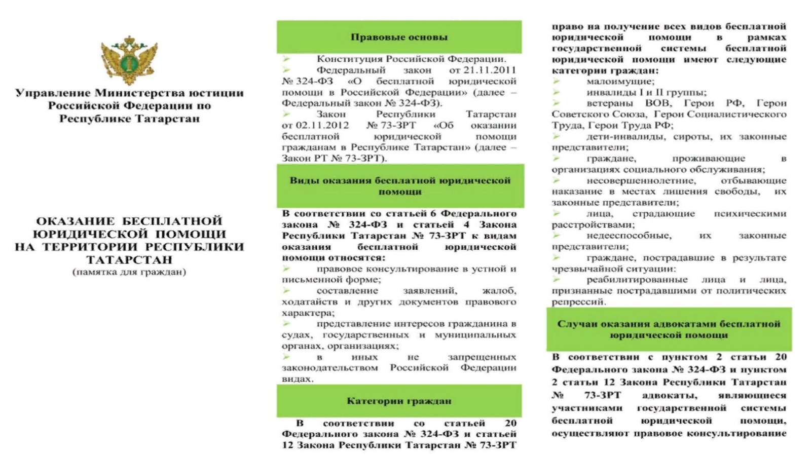 Татарстан Республикасы территориясендә түләүсез юридик ярдәм күрсәтү турында белешмәлек